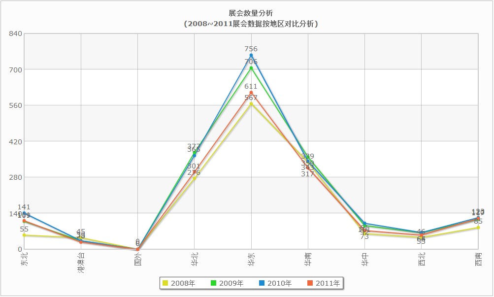 中國展會(huì)按區(qū)域的統(tǒng)計(jì)