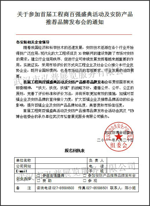 關(guān)于參加首屆工程商百強盛典活動及安防產(chǎn)品推薦品牌發(fā)布會的通知