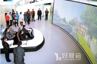 “VR”是英文Virtual Reality的縮寫,意為虛擬現(xiàn)實(shí),是借助計(jì)算機(jī)技術(shù)及硬件設(shè)備生成的視、聽、觸覺一體化的逼真虛擬環(huán)境。 “灤河VR”又名“城市漫游”虛擬駕駛,是以遷安市中心的河?xùn)|區(qū)、灤河兩岸、右岸新城為特定范圍制作成的數(shù)字建模,覆蓋面積約占中心城區(qū)的70%。“灤河VR”環(huán)幕影院包括三維弧度影幕和一個可供4人乘坐的“駕駛艙”。“駕駛艙”形如一個小型氣墊船,又像是一個大號的碰碰車。“駕駛艙”可通過駕駛?cè)丝刂品较虮P在影幕的實(shí)景畫面中虛擬行進(jìn),副駕駛位置的觸摸屏可控制陸地、水面、空中三種行進(jìn)模式。