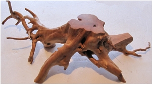 根據(jù)我們的實踐體會,一個完美的花架,應該體現(xiàn)“四個字”,即“大、小、多、少”。大:即面子要大,易于擺放飾品;“小”即根雕一般都有節(jié)疤,有節(jié)疤是好事,顯得蒼勁,但節(jié)疤要小,過大影響整體形象;“多”即“腳”要多,既有平穩(wěn)感,又有藝術(shù)美感;“少”指“手”要少,上面“手”太多,既影響美感,又影響飾品擺放。