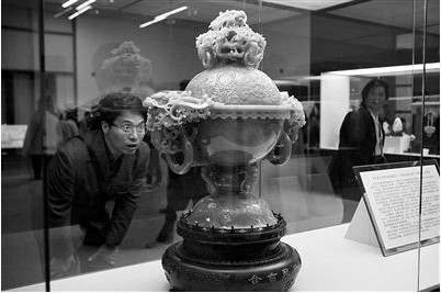 工藝美術領域也有了雙年展。昨日,2012年“中國當代工藝美術雙年展”在國家博物館開幕,展覽從今日開始至5月6日對外展出。約千件玉雕、木雕、陶瓷等工藝美術作品構成了首屆中國當代工藝美術雙年展。其中中國工藝美術館收藏作品、國寶級翡翠玉雕“含香聚瑞”花薰等展品成為此次雙年展的重頭戲。