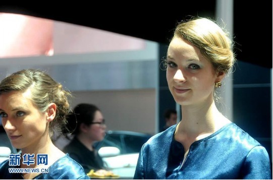 2012北京國際汽車展覽會4月25日-5月2日在北京中國國際展覽中心舉行。國外展商的各品牌汽車和國外模特的精彩表演成為人們關(guān)注的又一個亮點(diǎn)。圖為展會上的洋面孔。(來源:新華網(wǎng))