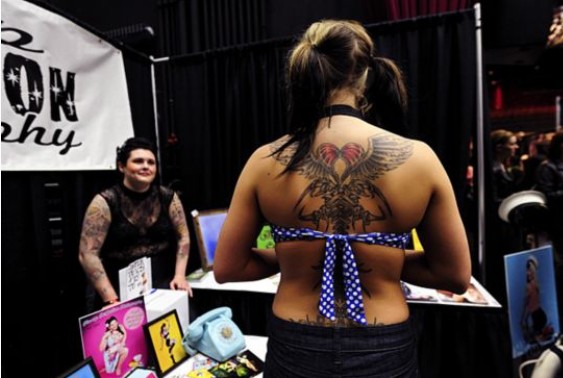2012年4月29日,溫哥華舉行西海岸紋身藝術(shù)展,來自北美各地的幾百名紋身師將最新最勁爆的紋身技藝和西海岸風(fēng)格刺青作品展現(xiàn)在眾人面前。(來源:環(huán)球網(wǎng))