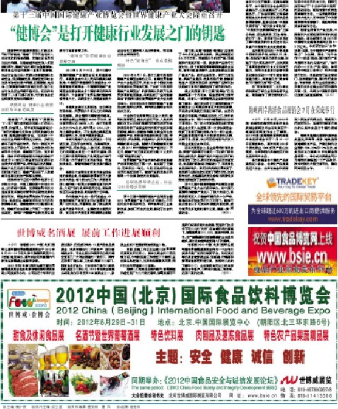 中國食品報是本屆展會的全程推廣機構,6月4日第一期關于中國食品飲料展覽會的全新面貌已展現(xiàn)會展經濟??5诙诘膱罂瘜⒃?/span>6月18日出版,版面內容主要集中在展會的新聞信息及參展客戶的品牌推廣方面,希望已經報名的參展客戶,及時提交您的產品信息到組委會新聞編輯部,以便做好您展前的宣傳工作。沒有的報名的客戶,也希望您能夠多多關注北京食品飲料博覽會暨特色飲料專題展,以及中國食品報會展經濟版的相關信息內容,我們希望通過食品報的權力推廣,能夠給您帶來更好的宣傳,也能給您這次參展帶來更好的效益。