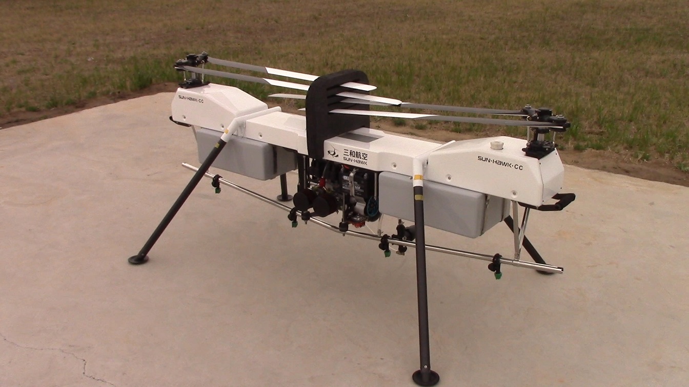 開創(chuàng)大載荷植保無人機新時代-CIAAE 2018三和航空重磅發(fā)布橫列雙旋翼植保無人機