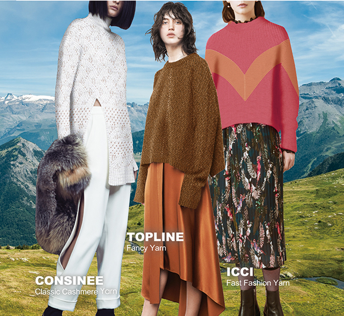 康賽妮集團(tuán)旗下品牌有:一、CONSINEE 經(jīng)典羊絨紗線;二、TOP LINE高檔花式紗線;三、ICCI快時(shí)尚紗線。