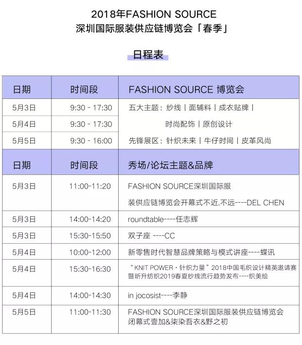文末提醒大家:收好FS2018春季展日程安排,早上9點(diǎn)開館參觀,不錯(cuò)過任何一場(chǎng)精彩。
