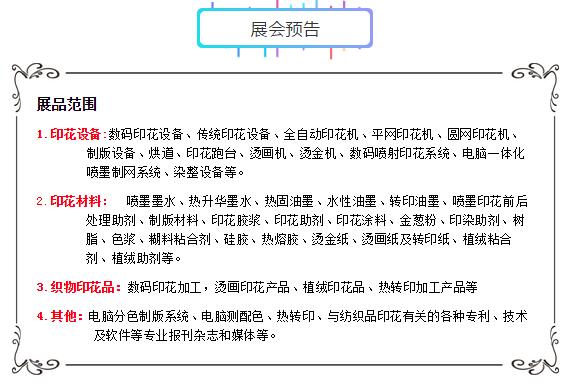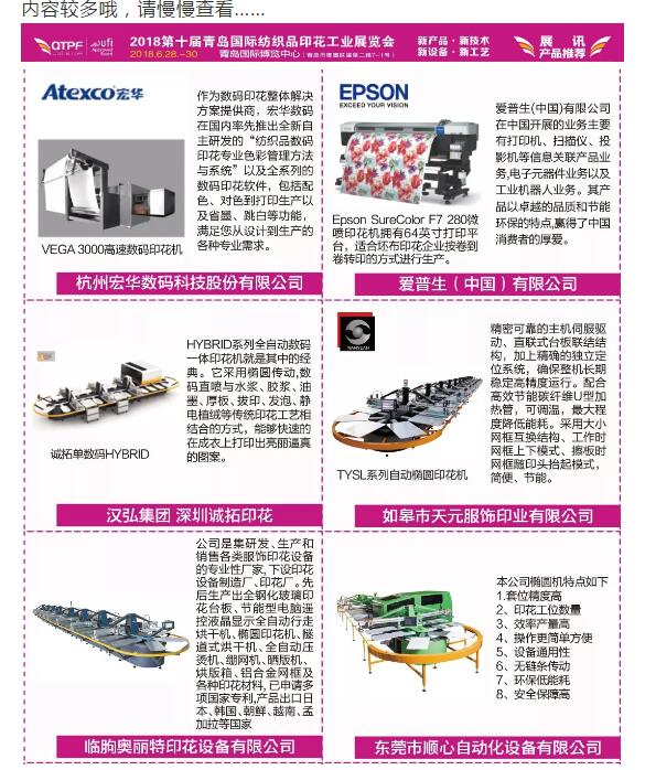 “2018第十屆青島國際紡織品印花工業(yè)展覽會”即將開展,我們整理了第一波“新產(chǎn)品·新技術·新設備·新工藝”的信息播報給你們,后續(xù)更多的產(chǎn)品資訊推送,請做好準備!