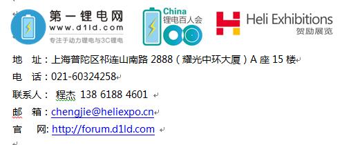 報(bào)名資料:展會(huì)官網(wǎng),第一鋰電網(wǎng)在線提交資料或郵件提供營業(yè)執(zhí)照復(fù)印件及LOGO尺寸:220*120