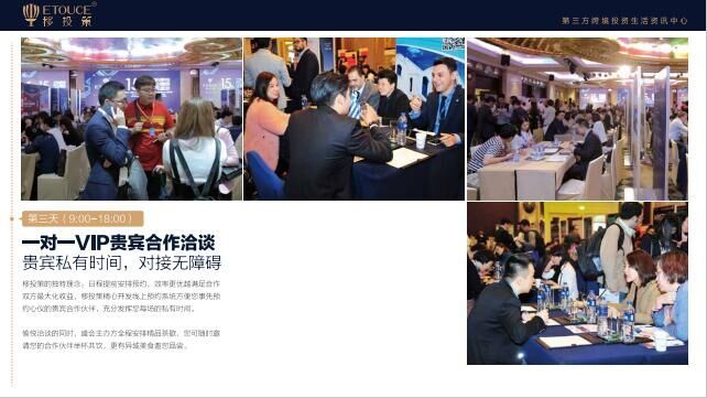 第三天所有和中介談合作的方式都是通過(guò)我們?cè)诰€預(yù)約系統(tǒng)提前安排好,您可以尋找您最合適的項(xiàng)目或中介,現(xiàn)場(chǎng)會(huì)以預(yù)約好的行程進(jìn)行洽談,洽談過(guò)程中可以品嘗項(xiàng)目方帶來(lái)的異國(guó)美食。