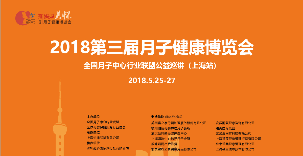 2018第三屆月子健康博覽會(huì)全國(guó)月子中心行業(yè)聯(lián)盟公益巡講(上海站)于5月25-27日在上海光大會(huì)展中心圓滿舉行