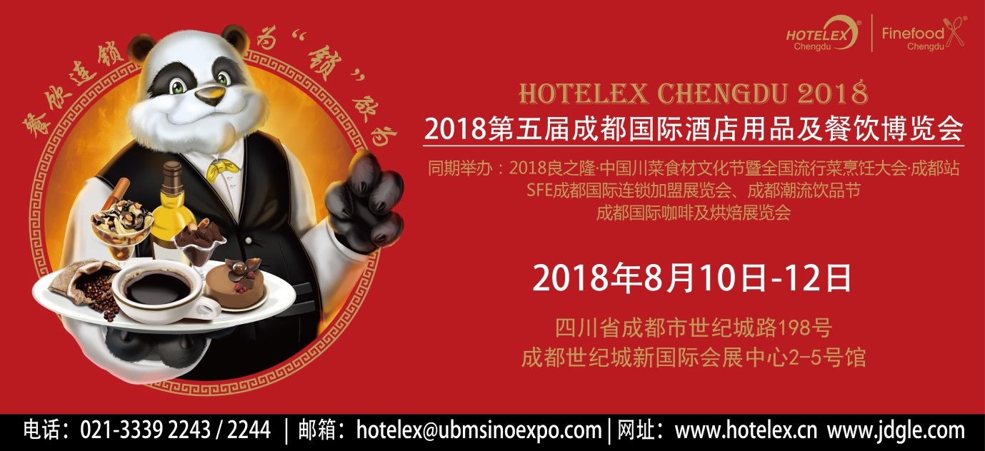 第五屆成都國際酒店用品及餐飲博覽會(簡稱:HOTELEX Chengdu 2018)將于2018年8月10日至12日在成都世紀(jì)城新國際會展中心2-5號館舉行(四川省成都市世紀(jì)城路198號)。同期還將舉辦2018良之隆中國川菜食材文化節(jié)暨全國流行菜烹飪大賽-成都站、SFE成都國際連鎖加盟展覽會、成都潮流飲品節(jié)以及成都國際咖啡及烘焙展覽會。作為上海國際酒店及餐飲業(yè)博覽會的地方展,立足四川蓉城,輻射西南地區(qū),旨在為客戶提供最豐富優(yōu)質(zhì)的選擇。