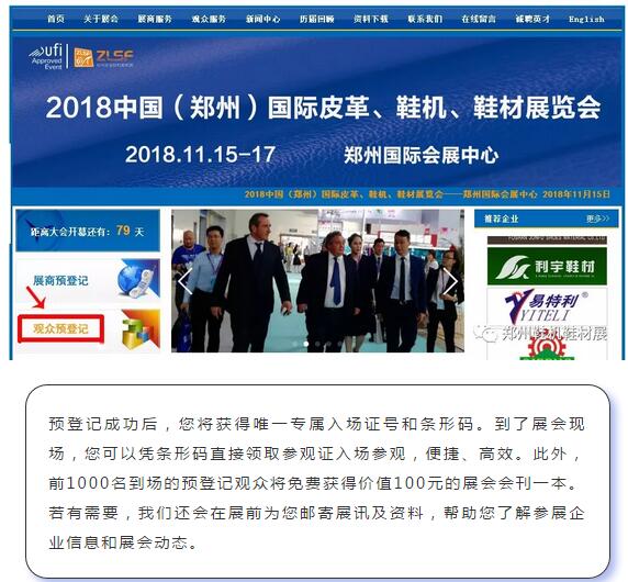 方式三:登錄鄭州國際皮革、鞋材、鞋機展官網(wǎng)http://www.qdlsm.com/進行預(yù)登記。