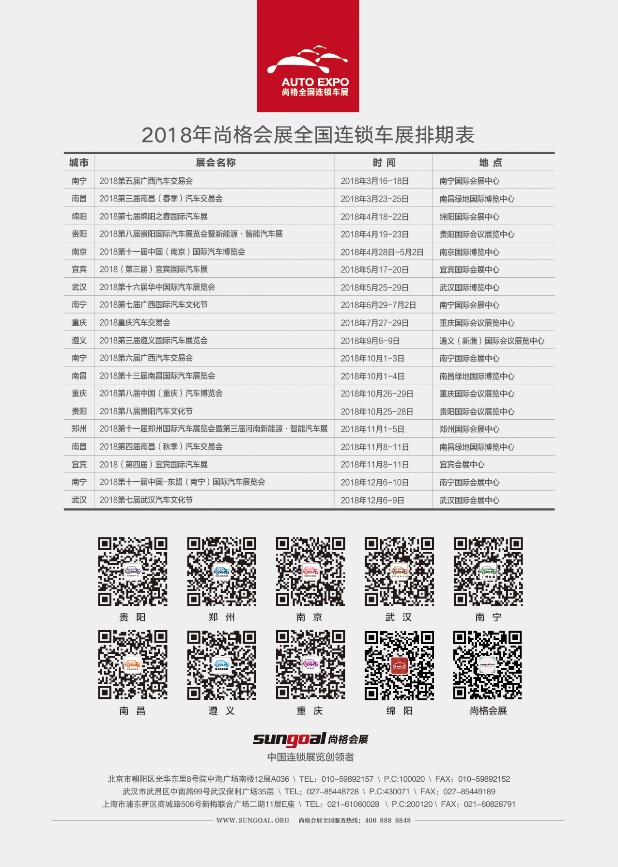 尚格會(huì)展,勵(lì)精圖治23年,在武漢、南京、南昌、鄭州、貴陽(yáng)、遵義、綿陽(yáng)、宜賓、重慶、南寧等十余城市,每年舉辦20余場(chǎng)車展,年組展面積超100萬(wàn)平方米,尚格以“夸父逐日”的精神持續(xù)探索著行業(yè)。近年來(lái)車市緩增,會(huì)展業(yè)同質(zhì)化嚴(yán)重,在此巨大的商戰(zhàn)變革中,尚格逆勢(shì)突圍、撥亂反正,穩(wěn)坐中國(guó)二三線城市車展的龍頭交椅。限量免費(fèi)搶票瘋狂進(jìn)行中,點(diǎn)我點(diǎn)我。