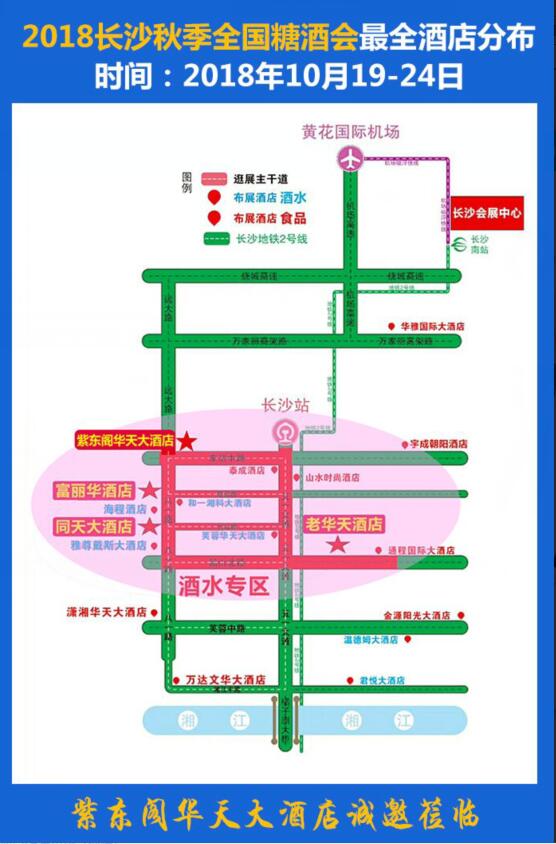 【紫東閣華天大酒店·酒水布展專區(qū)】2018長(zhǎng)沙秋糖布展點(diǎn)集中,自成一體,布展中心區(qū)主要為長(zhǎng)沙市火車站、五一路、萬(wàn)家麗路三大區(qū)域。特別是酒類展區(qū),沿襲了糖酒會(huì)歷來以“火車站+市中心”的傳統(tǒng)布展模式,在長(zhǎng)沙市區(qū)主干線火車站上形成了以紫東閣華天大酒店為中心的精品酒水展覽專區(qū)。身處德天都厚地理位置的紫東閣華天大酒店,不僅在秋糖酒店展區(qū)集中圈,更是五一路起點(diǎn)長(zhǎng)沙火車站出站第①座酒水布展酒店,毗鄰萬(wàn)家麗。黃金地段、絕佳展示空間、物超所值的性價(jià)比、搶到的都是商機(jī)!