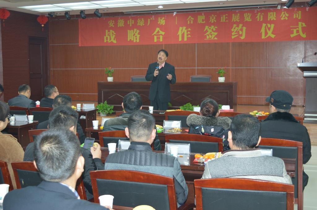 2018年12月6日10:00,在安徽中綠廣場(chǎng)寫(xiě)字樓26樓會(huì)議廳,安徽中綠廣場(chǎng)與合肥京正展覽有限公司戰(zhàn)略合作簽約儀式隆重開(kāi)場(chǎng)。