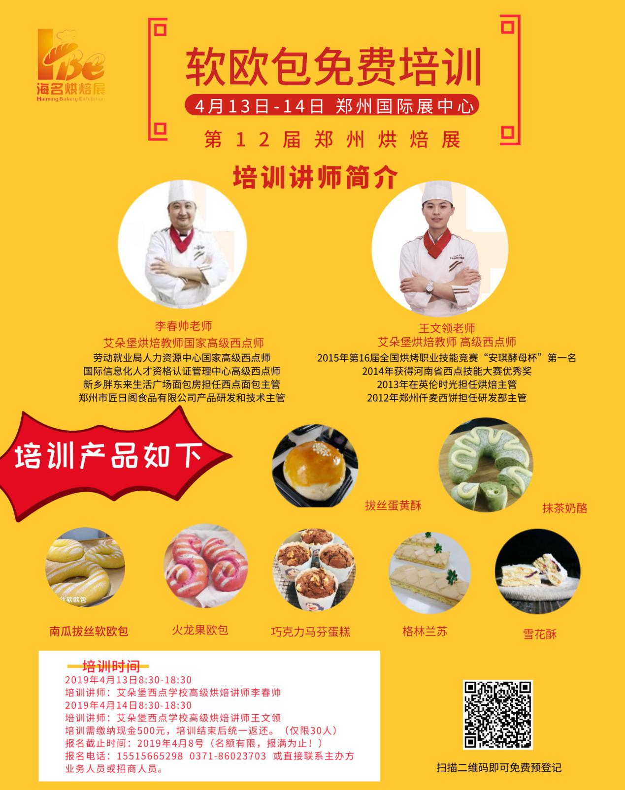 鄭州烘焙展攜手鄭州艾朵堡西點西餐教育舉辦的展示為期兩天的軟歐包技術(shù)教學(xué)培訓(xùn),免費名額僅剩8個,報名即有機會與得到名師一對一指導(dǎo)交流與學(xué)習(xí)。