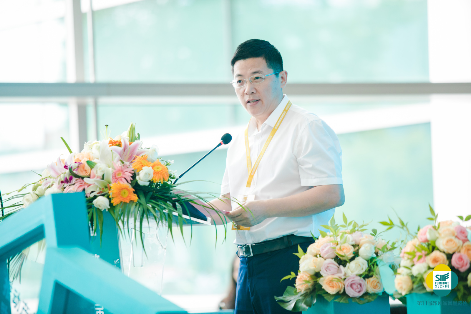 蘇州市相城區(qū)區(qū)委常委、元和街道黨工委書記尤建豐先生發(fā)表講話。首先尤書記表達(dá)了對(duì)蘇州家具展的祝賀、對(duì)各界人士蒞臨蘇州表示歡迎。他表示蘇州家具展與蠡口國(guó)際家具城是蘇州家具產(chǎn)業(yè)的兩張名片,蘇州家具展歷經(jīng)十一年,已經(jīng)成長(zhǎng)為全國(guó)范圍內(nèi)的重要家具展會(huì);蠡口國(guó)際家具城作為中國(guó)家具東部商貿(mào)之都,是中國(guó)家具重要的貿(mào)易集散地,十多年來(lái),二者息息相關(guān),展會(huì)與市場(chǎng)相互促進(jìn),相互成就,成為了華東家具的一段佳話,最后尤書記也希望大家能在蘇州家具展現(xiàn)場(chǎng)參展有效,觀展有益,互惠互利,共同發(fā)展。