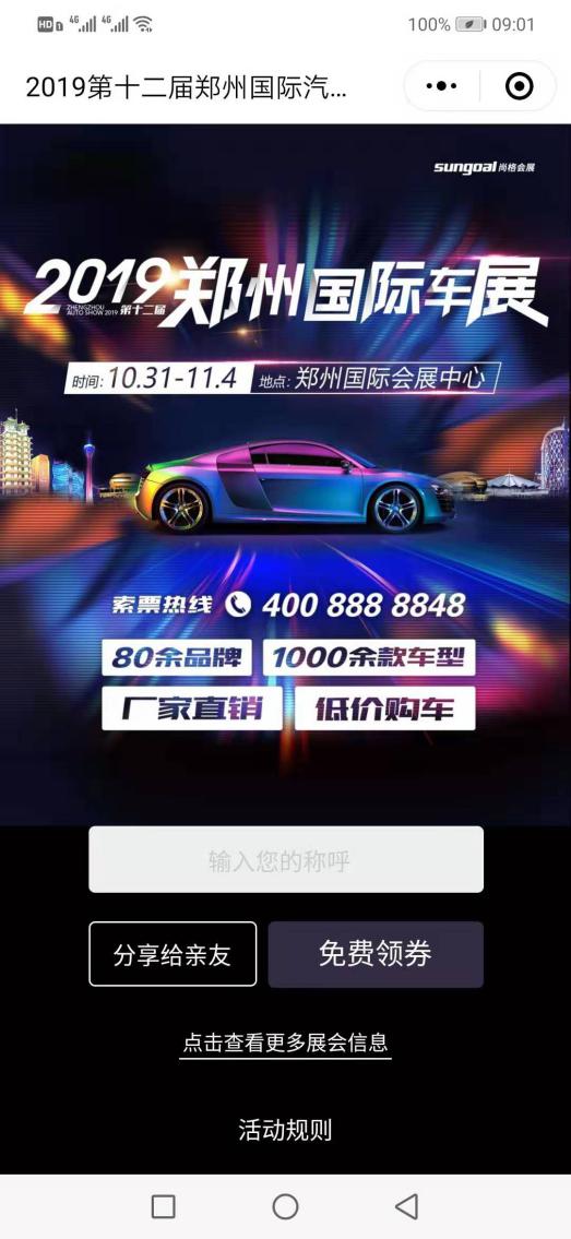 福利來了,2019鄭州國(guó)際車展門票免費(fèi)開搶啦!