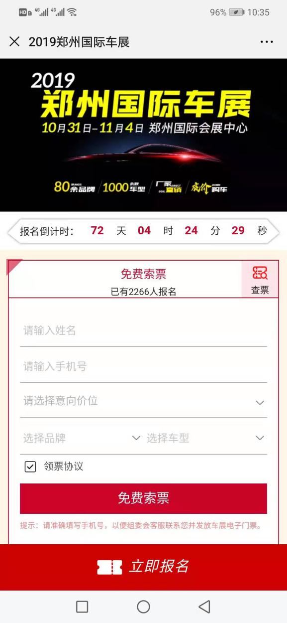 2、準(zhǔn)確填寫相關(guān)信息,即可獲得車展門票。