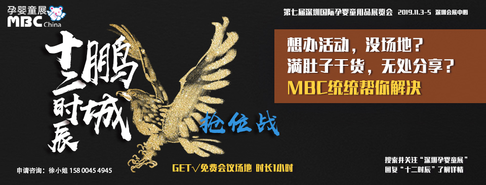 2019年11月3-5日連續(xù)舉辦七屆的MBC深圳孕嬰童展將在鵬城與大家見面!MBC作為專業(yè)的母嬰行業(yè)資源整合平臺,也將貢獻自己的一份力量。將為MBC 2019已參展母嬰企業(yè)或是母嬰行業(yè)大咖級人物免費提供活動舉辦場地或是干貨分享環(huán)節(jié),時長1小時。我們來搭臺,您們來唱戲!MBC深圳孕嬰童展與你一起助力中國母嬰產(chǎn)業(yè)品質(zhì)升級!