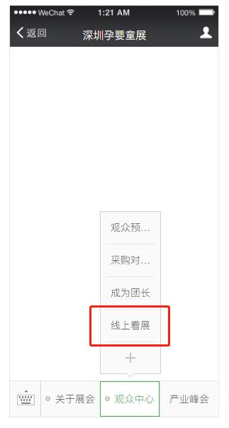 一.關(guān)注公眾號【深圳孕嬰童展】,點擊菜單-觀眾中心-線上看展