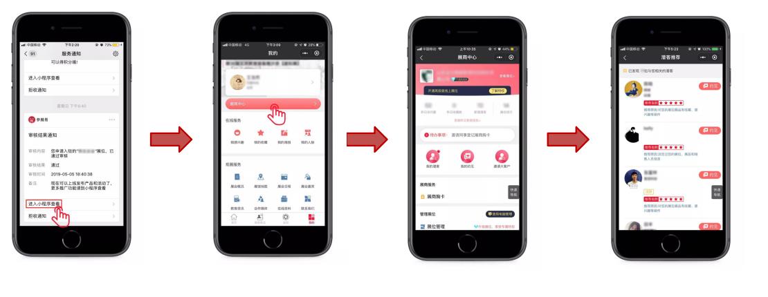 ·收到系統(tǒng)審核通知后,點擊“進(jìn)入小程序查看”進(jìn)入展商中心;
