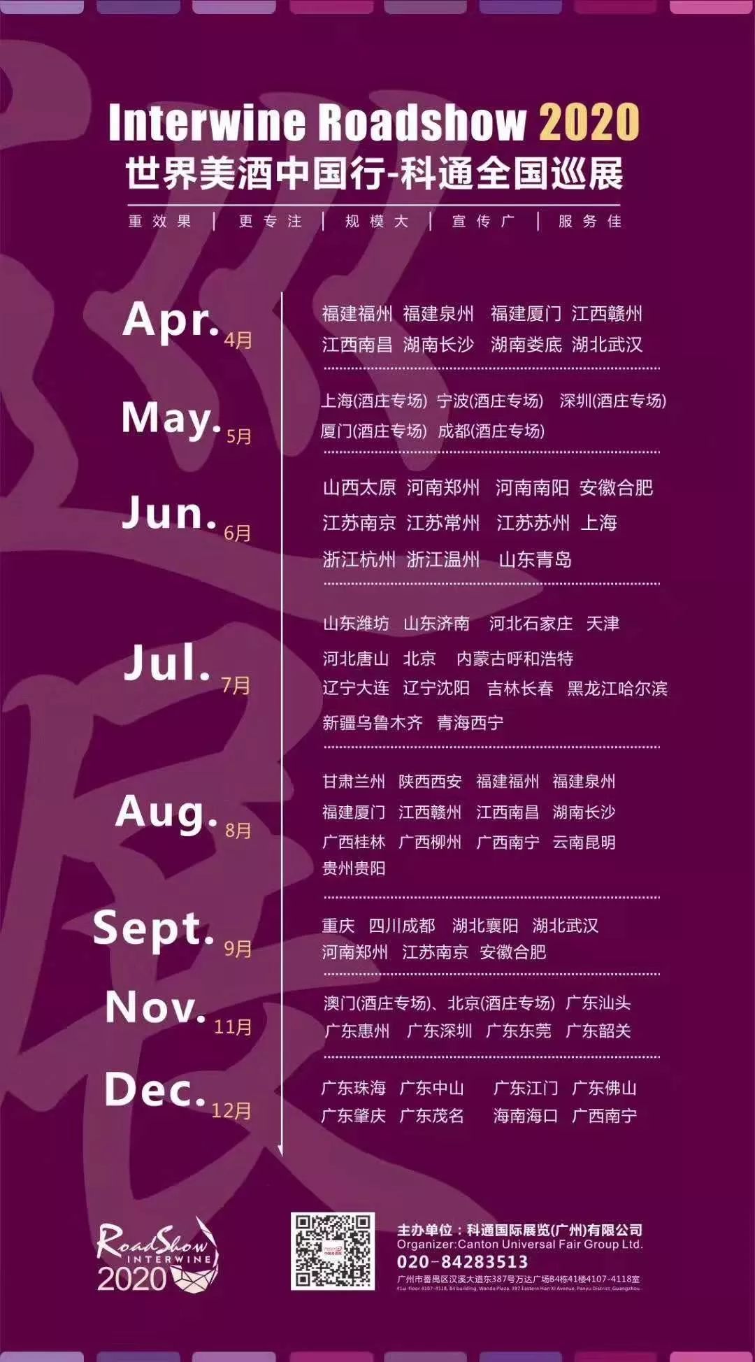 科通年末華南巡展正在如火如荼開展中,截至12月6日,64站城市巡展已經(jīng)圓滿收官;2020年,史上最大規(guī)模來襲!75+城市巡展與你同行,攜手共進(jìn),精準(zhǔn)對(duì)接中國(guó)二三線最具潛力的葡萄酒市場(chǎng)!