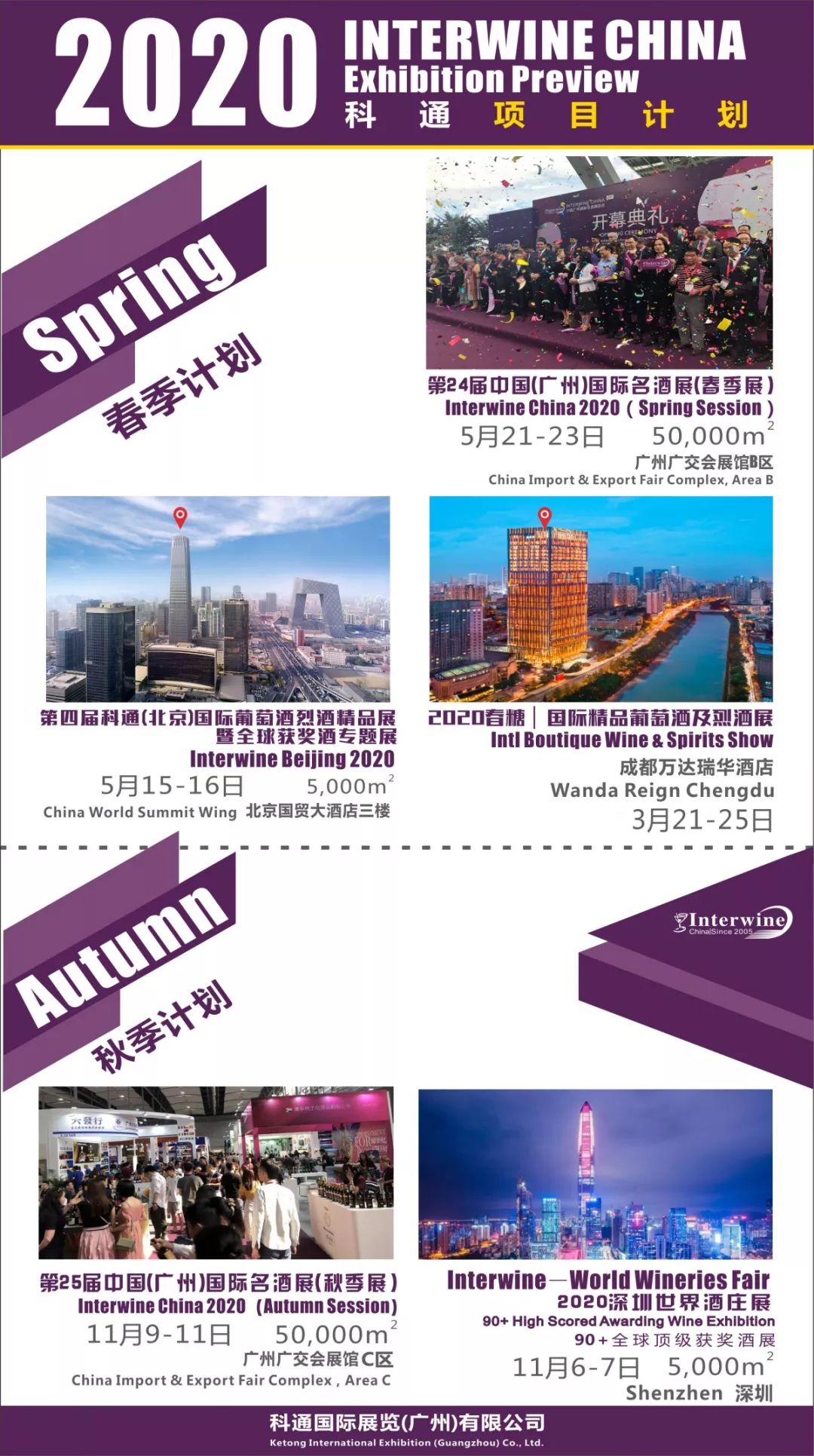 2020年科通展覽將聚焦“專業(yè)化、精品化、區(qū)域市場(chǎng)細(xì)化”,全面擴(kuò)大精品專業(yè)葡萄酒烈酒展規(guī)模,北廣深廈及75場(chǎng)城市巡展全面來襲,展覽面積達(dá)到15萬平方米以上,展會(huì)綜合影響力全國(guó)首位!