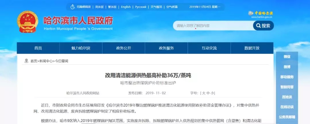 去年哈爾濱市財政局會同哈爾濱市生態(tài)環(huán)境局印發(fā)《哈爾濱市2019年整治燃煤鍋爐推進清潔化能源使用財政補助資金管理辦法》,對集中供熱并網(wǎng)、改用清潔化能源、廢棄拆除燃煤鍋爐制定了相應(yīng)補助標準。