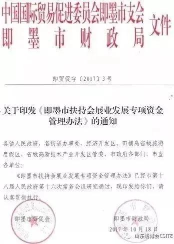 2017年,即墨政府下發(fā)關(guān)于企業(yè)參展可享補(bǔ)貼的紅頭文件!2018年、2019年即墨當(dāng)?shù)氐膮⒄蛊髽I(yè)輕松享受到了福利政策。