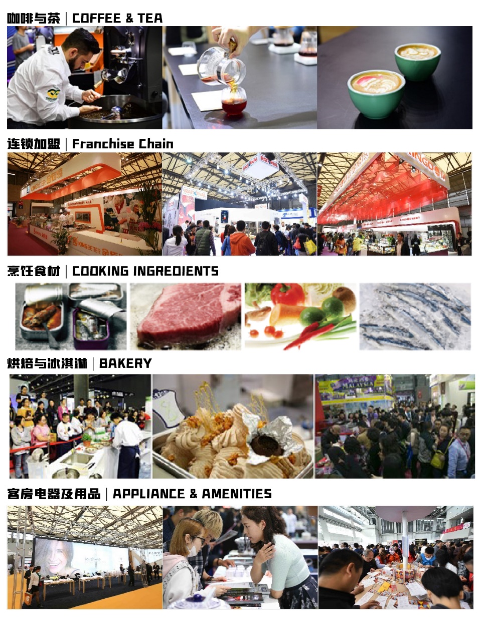 2020廣州國際酒店用品及餐飲博覽會將網(wǎng)羅咖啡茶飲、餐飲設(shè)備、烹飪食材、烘焙與冰淇淋、酒店用品綜合、餐飲連鎖加盟等亮點板塊,眾多優(yōu)質(zhì)展商將為專業(yè)觀眾及采購商提供最豐富的行業(yè)產(chǎn)品。