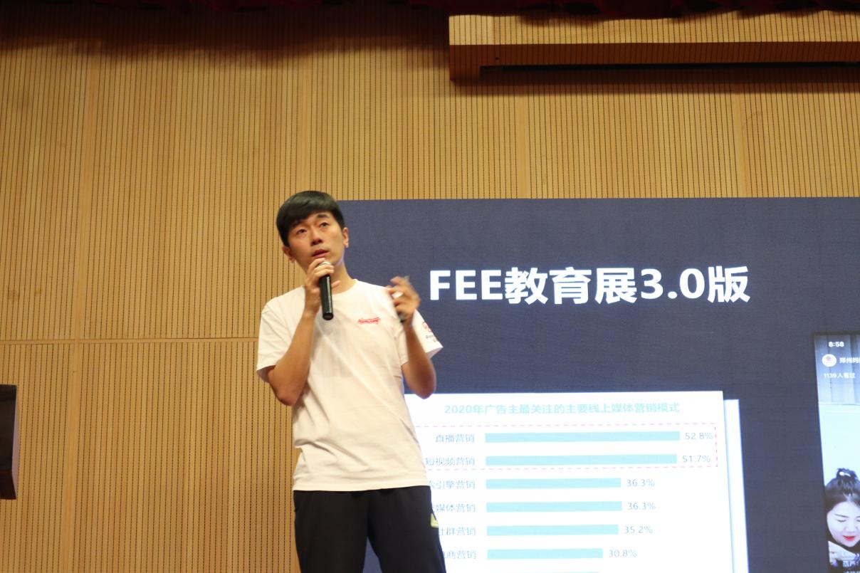 圖為:鄭州媽媽邦總經(jīng)理?xiàng)钌?br /> 鄭州媽媽邦總經(jīng)理(FEE教育展創(chuàng)始人)楊上先生分享了鄭州媽媽邦一貫秉持“高度信任、全情投入、攜手共贏”的企業(yè)服務(wù)態(tài)度,詳細(xì)介紹了展會(huì)線上線下的獨(dú)特模式,采用的最新直播及科技賦能的手段,為參展客戶打造全年不間斷的推廣頻次和維度。其超前的傳播思維,多元化的推廣模式,互動(dòng)性的交流氛圍,帶給與會(huì)嘉賓和代表們?nèi)碌母惺?,隨即在現(xiàn)場(chǎng)及直播端引起了廣泛的關(guān)注和共鳴。