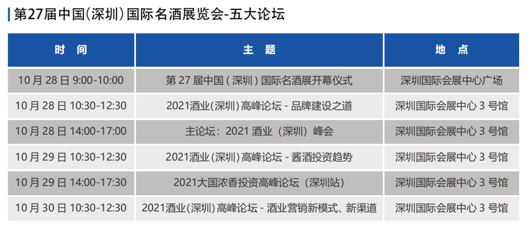 10月28日-30日,由科通國(guó)際展覽(廣州)有限公司主辦的“第27屆中國(guó)(深圳)國(guó)際名酒展覽會(huì)”(以下簡(jiǎn)稱“名酒展”)將在深圳國(guó)際會(huì)展中心舉辦,3大展館展示面積高達(dá)60000㎡。