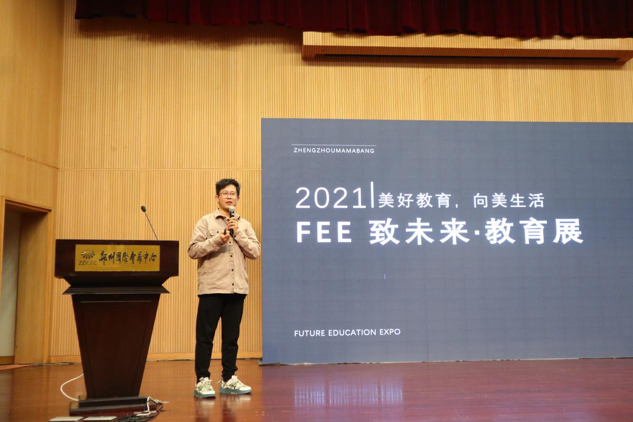 鄭州媽媽邦總經(jīng)理(FEE教育展創(chuàng)始人)楊上先生分享了鄭州媽媽邦一貫秉持“高度信任、全情投入、攜手共贏”的企業(yè)服務(wù)態(tài)度,詳細介紹了展會線上線下的獨特模式,采用的最新直播及科技賦能的手段,為參展客戶打造全年不間斷的推廣頻次和維度。其超前的傳播思維,多元化的推廣模式,互動性的交流氛圍,帶給與會嘉賓和代表們?nèi)碌母惺?,隨即在現(xiàn)場及直播端引起了廣泛的關(guān)注和共鳴。