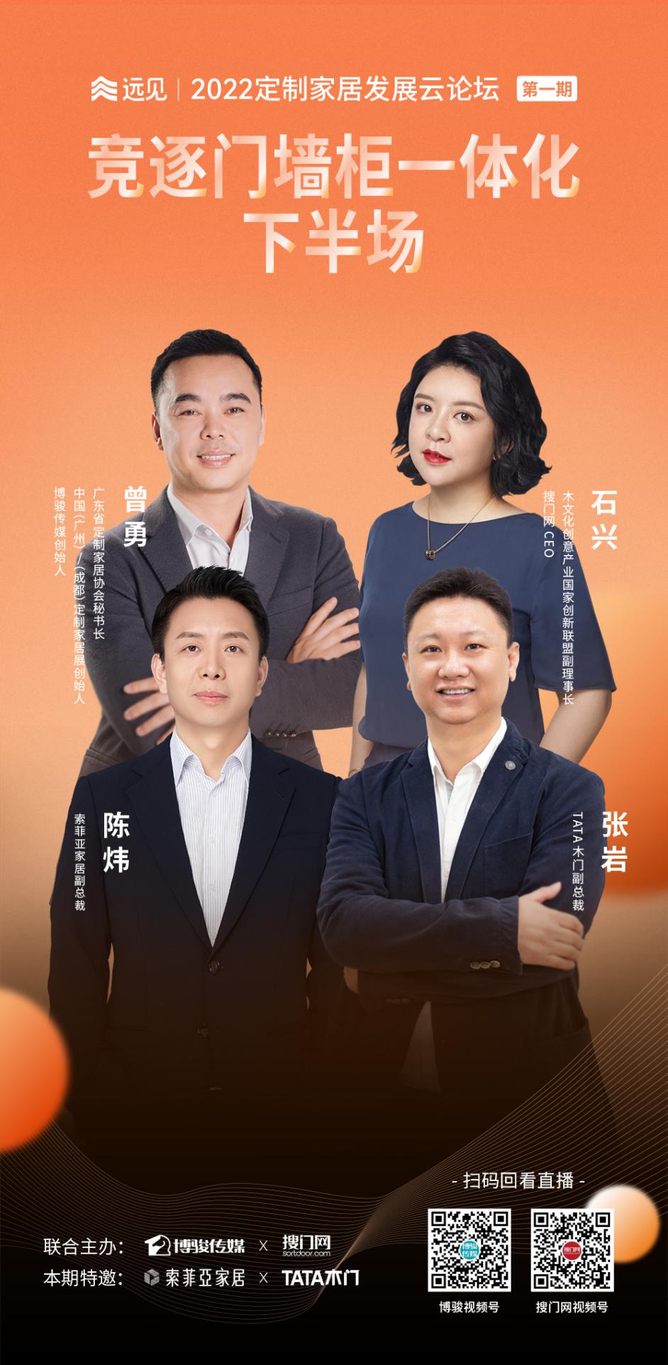 5月23日,博駿傳媒聯合搜門網舉辦“遠見·2022定制家居發(fā)展云論壇”,首期聚焦 “整家一體定制”和“門墻柜一體化”話題,邀請定制和木門行業(yè)的領軍企業(yè)代表——索菲亞、TATA木門進行對話。