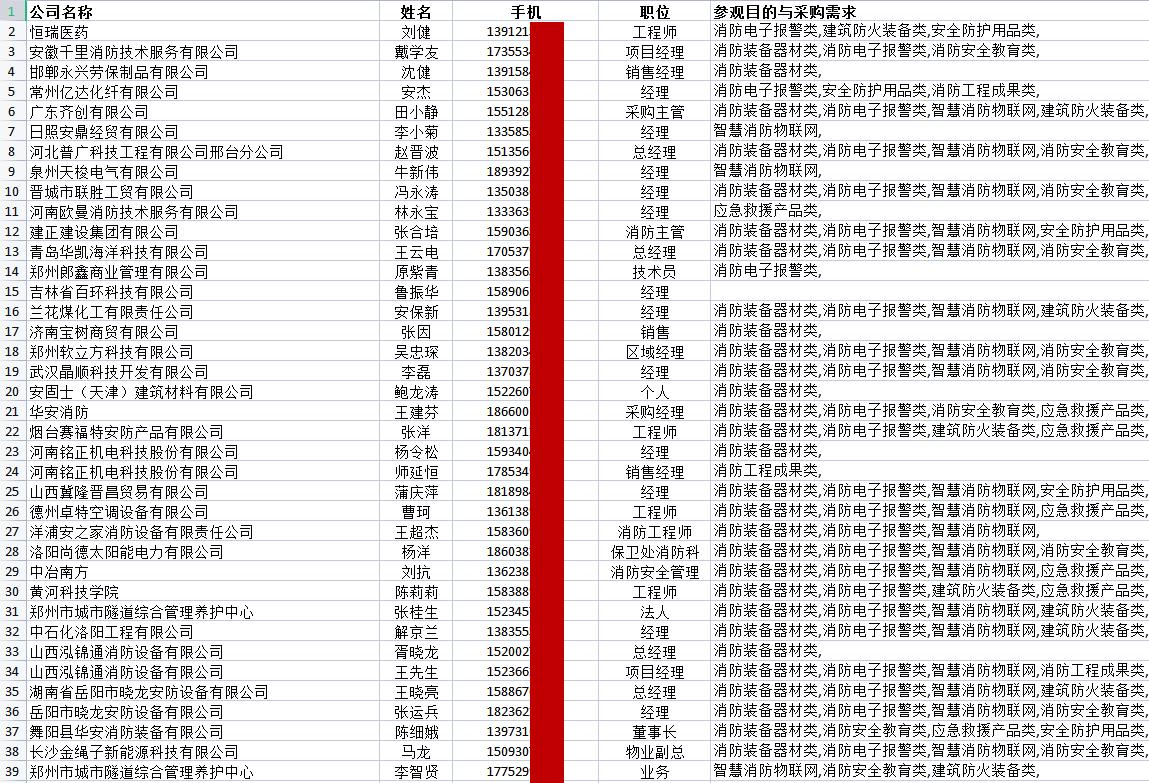 CZFE第13屆鄭州消防展“VIP參觀采購商”意向采購需求