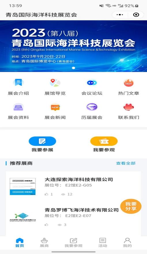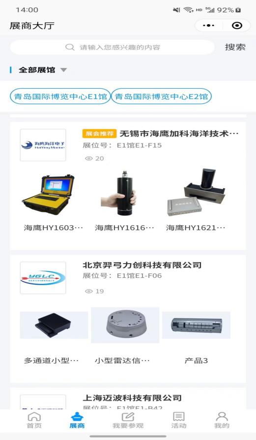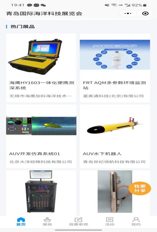 您可以通過展商秀平臺(tái)提前預(yù)覽2023(第八屆)青島國際海洋科技展覽會(huì)參展商、展品、主題論壇、同期活動(dòng)等展會(huì)相關(guān)內(nèi)容,實(shí)時(shí)掌握青島??普棺稍?、預(yù)約洽談,報(bào)名參會(huì)!
